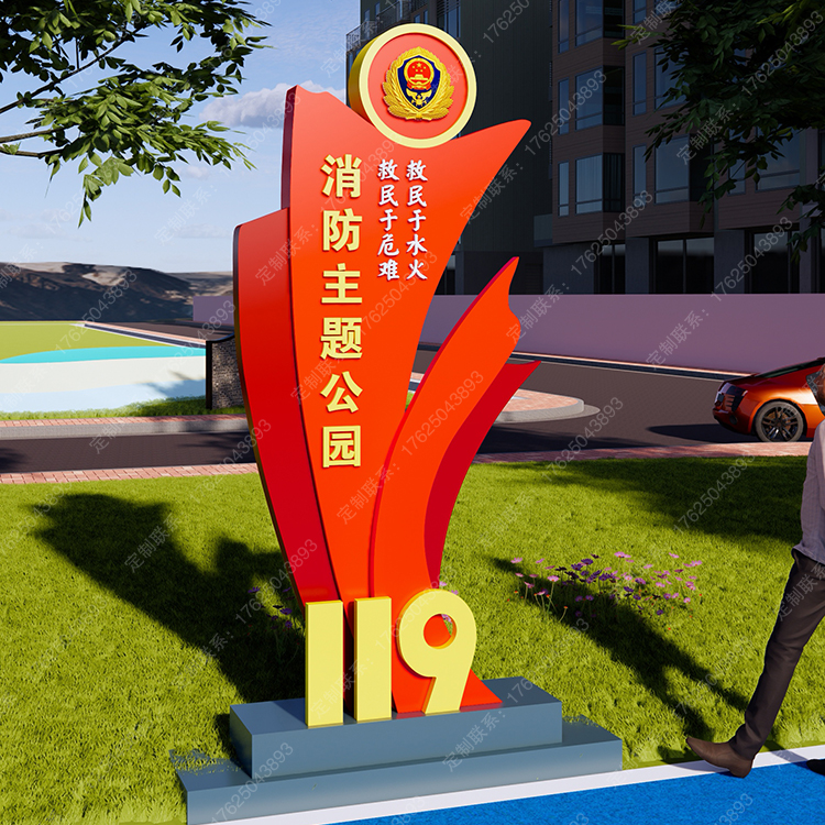 消防主題公園119文化廣場景觀座椅安全知識翻轉(zhuǎn)牌互動翻翻樂雕塑